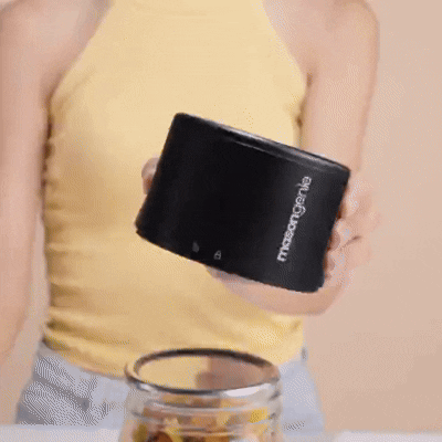 In 30–60 seconds, the jar becomes perfectly airtight. Lift Mason Genie off and enjoy a long-lasting, ultra-fresh seal.