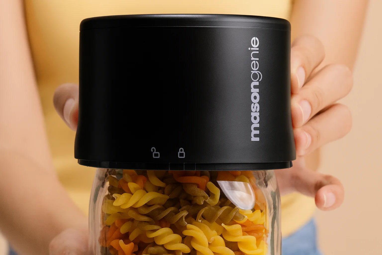 Mason Genie is a compact, powerful vacuum sealer designed specifically for mason jars, giving you airtight preservation without bulky equipment or plastic waste. With one simple press of a button, it removes air from your jars for longer-lasting freshness—perfect for pantry goods, meal prep, leftovers, and homemade creations. Built for everyday convenience, it’s ideal for busy families, home cooks, and anyone who wants a cleaner, more organized kitchen.